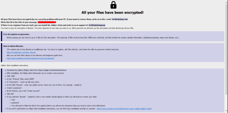 Ransom Note. The note is embedded in the ransomware executable and they are displayed usually with the info.txt and info.hta names.